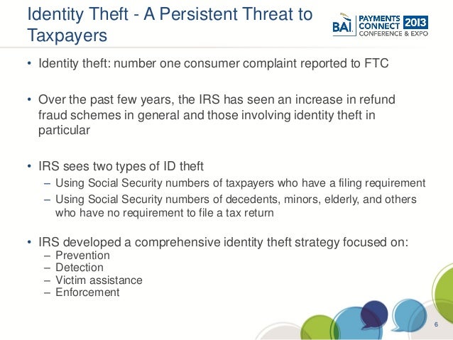 “Identity Theft and Tax Fraud part of the IRS’s identity theft strategy to prevent, detect, and resolve identity theft cases. important tool that could help the IRS prevent this type of fraud is the National ... Retrieve Here